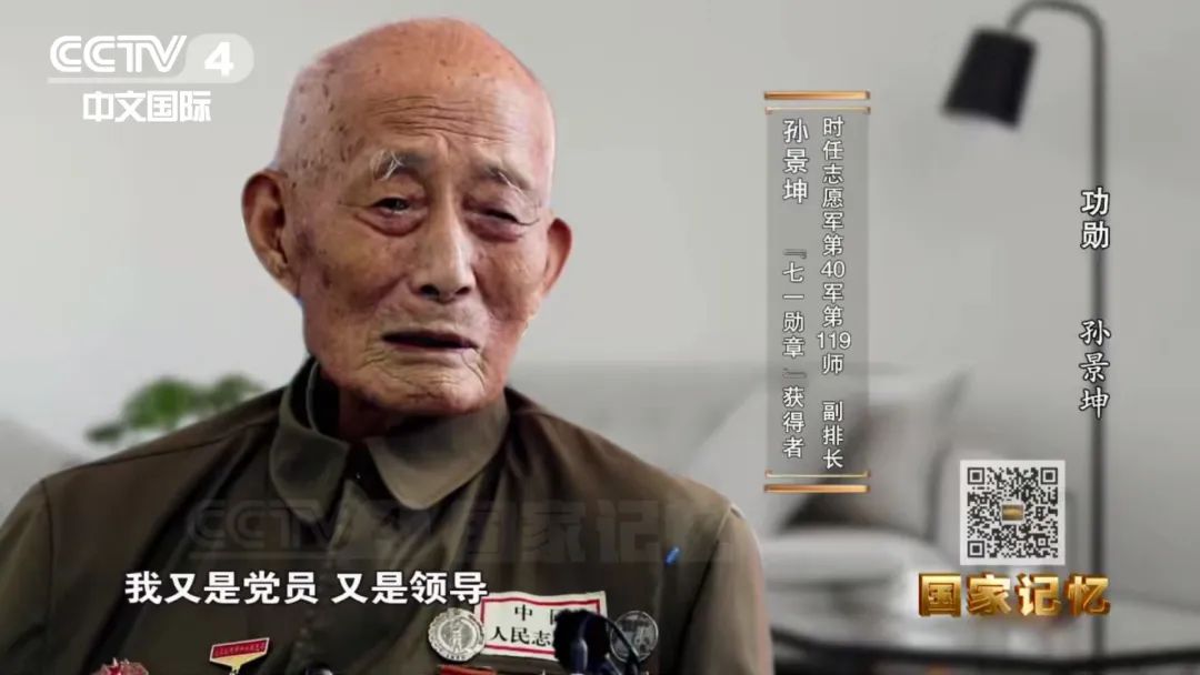 2020年8月,孙景坤被党和政府请到丹东市光荣院安享晚年,当时已96岁高龄的孙景坤特意将自己的志愿军军服带在身边,军服上的勋章依然熠熠生辉。