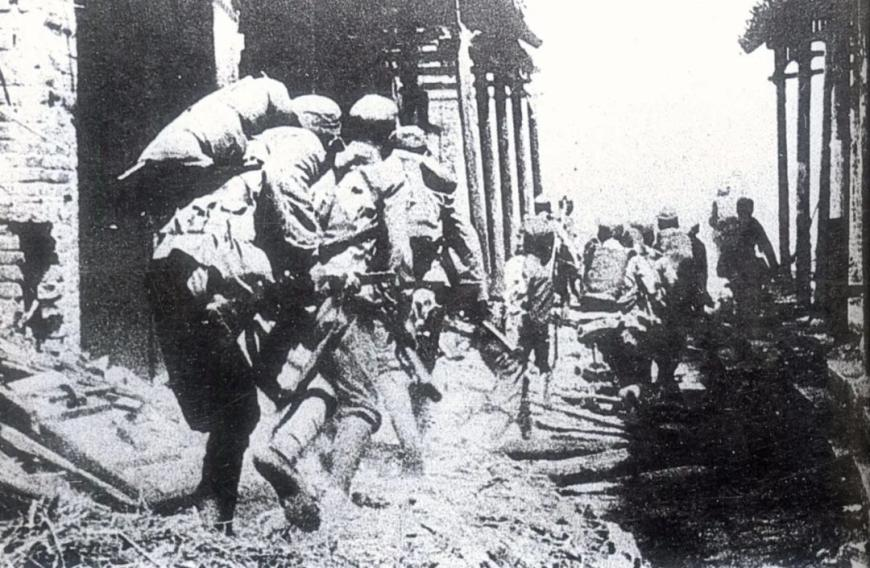 1938年4月上旬,中国军队在台儿庄与日军展开激烈巷战。新华社发