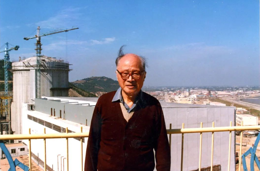 照片拍摄于1989年,在秦山核电站现场,当时已八十多岁高龄的王淦昌登上几十米的高处进行参观检查