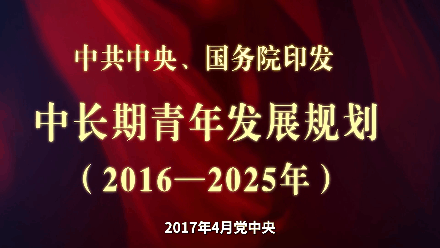 2017年4月党中央、国务院正式出台《中长期青年发展规划(2016—2025年)》,为未来十年中国青年将如何发展指明了方向。这是我国第一部促进青年发展的国家级专项规划,是各领域青年发展政策的系统集成,在我国青年发展事业进程中具有重要的里程碑意义。