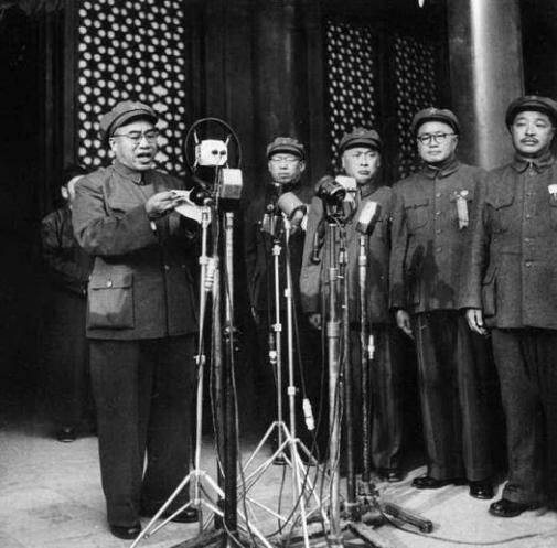 1949年10月1日开国大典上,朱德总司令宣读中国人民解放军总部命令