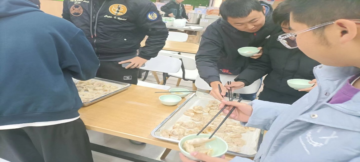 在进行几小时的辛勤劳动之后,饺子终于出炉啦!同学们开始品尝自己亲手制作的饺子啦!