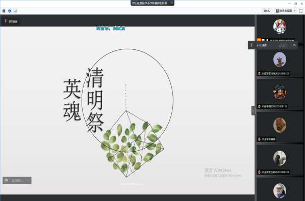 此次活动分为三个部分:一、观看影片忆先烈;铭记百年党史,缅怀革命先烈。以观影的形式重温了中国共产党建党那段峥嵘岁月,感受革命先辈崇高的信仰和对共产主义事业不懈的追求。二、重温事迹承遗志;缅怀,为铭记,更为传承。每一次致敬英烈,是对初心的扣问,也是对精神的唤醒。随后,团员干部陈楠婷向大家分享了抗日名将傅作义将军的“人生三部曲",铁血抗日、和平义举、躬身水利,这些英雄事迹让团员干部都不禁为此动容。三、文明扫墓托哀思;英烈心中记,追思在云端。疫情阻挡不了大家想要缅怀英烈的心,特殊时期大家采用了“云”祭扫这一绿色文明祭扫方式。团员纷纷登录中华英烈网,在烈士英名录里向革命烈士献花鞠躬,书写感言寄语,表达对英烈的缅怀和敬仰。
