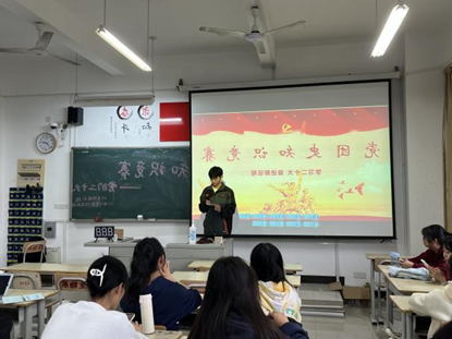 活动伊始,由2022级生物技术1班的团支书沈辰和2022级海洋资源开发技术1班的团支书赖郑凯简要介绍了党的二十大的内容及其意义,指出了党的二十大的主要精神和内涵,并向同学们深入阐述了如何学习和贯彻党的二十大精神。期间,团支书们还播放了党的二十大报告相关视频,以便同学们更好地理解党的二十大精神内容。