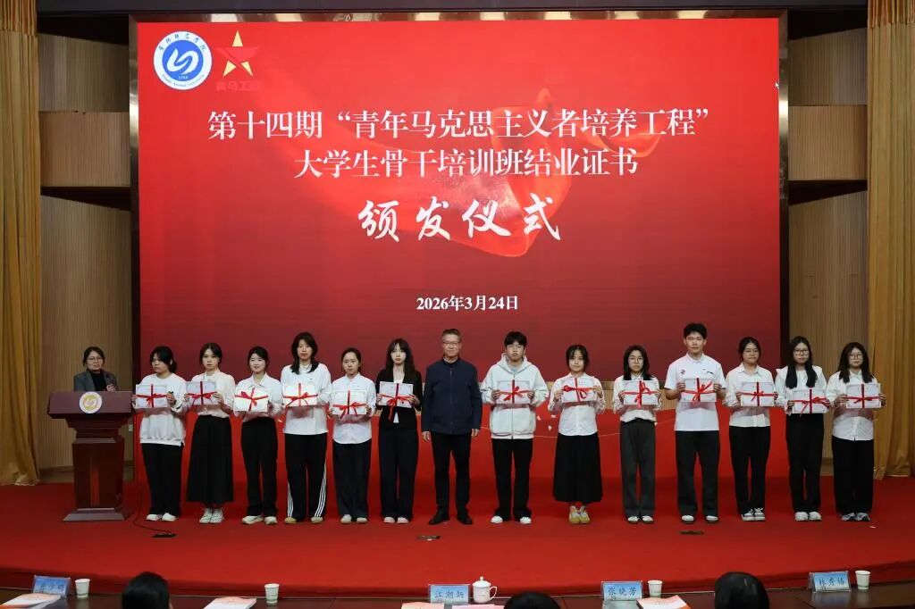 3月24日,我校举办第十四期“青年马克思主义者培养工程”大学生骨干培训班、第九期“习近平新时代中国特色社会主义思想读书社”结业暨第十五期“青马工程”大学生骨干培训班、第十期“读书社”开班式。校党委副书记江潮炳为学员颁发结业证书和优秀学员证书并讲话,校团委书记陶莉主持会议。