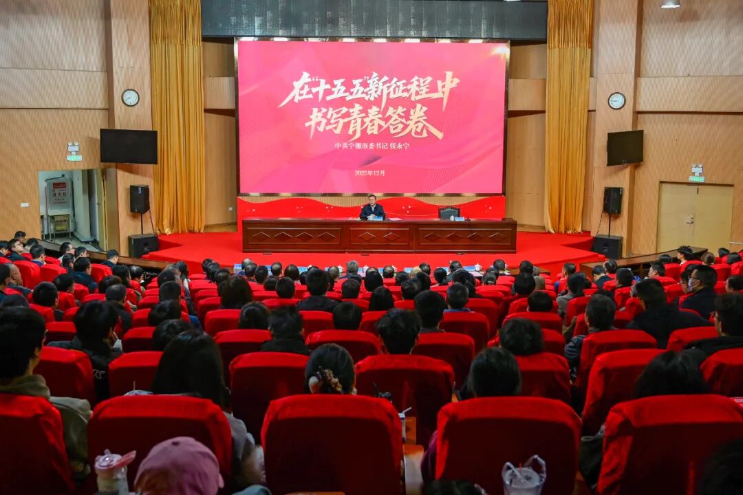 12月18日,宁德市委书记张永宁莅校讲授思政课,宣讲党的二十届四中全会精神,寄语青年学子在“十五五”新征程中,书写无愧时代、无愧青春的精彩答卷。校党委书记林清泉主持报告会。市委常委、秘书长蓝康昌,全体在校校领导参加。