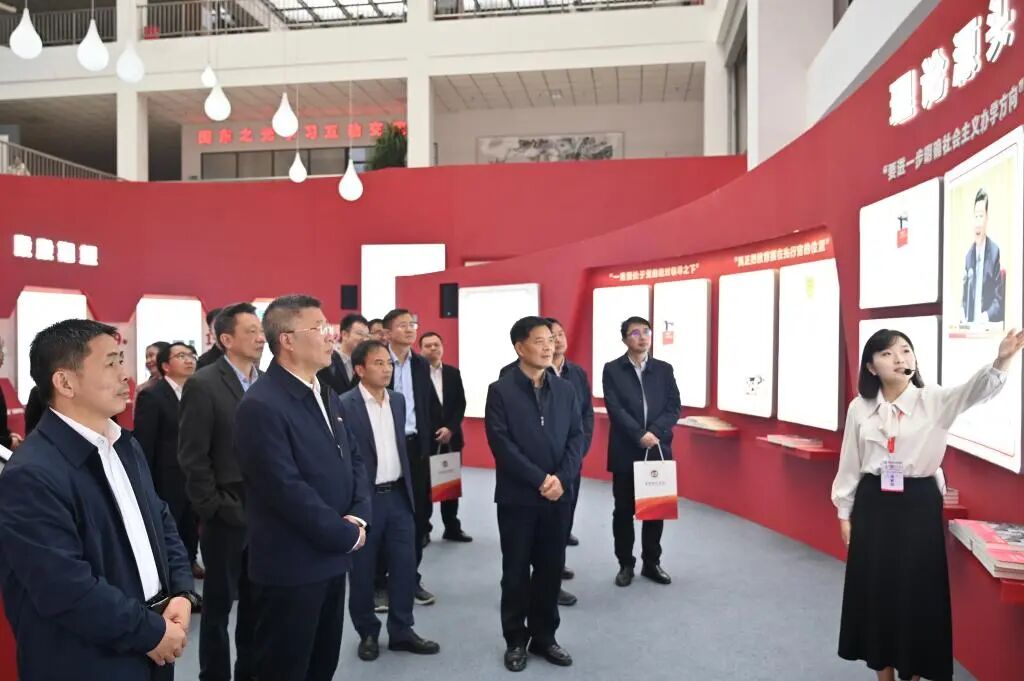 与会代表在我校主题展馆参观调研