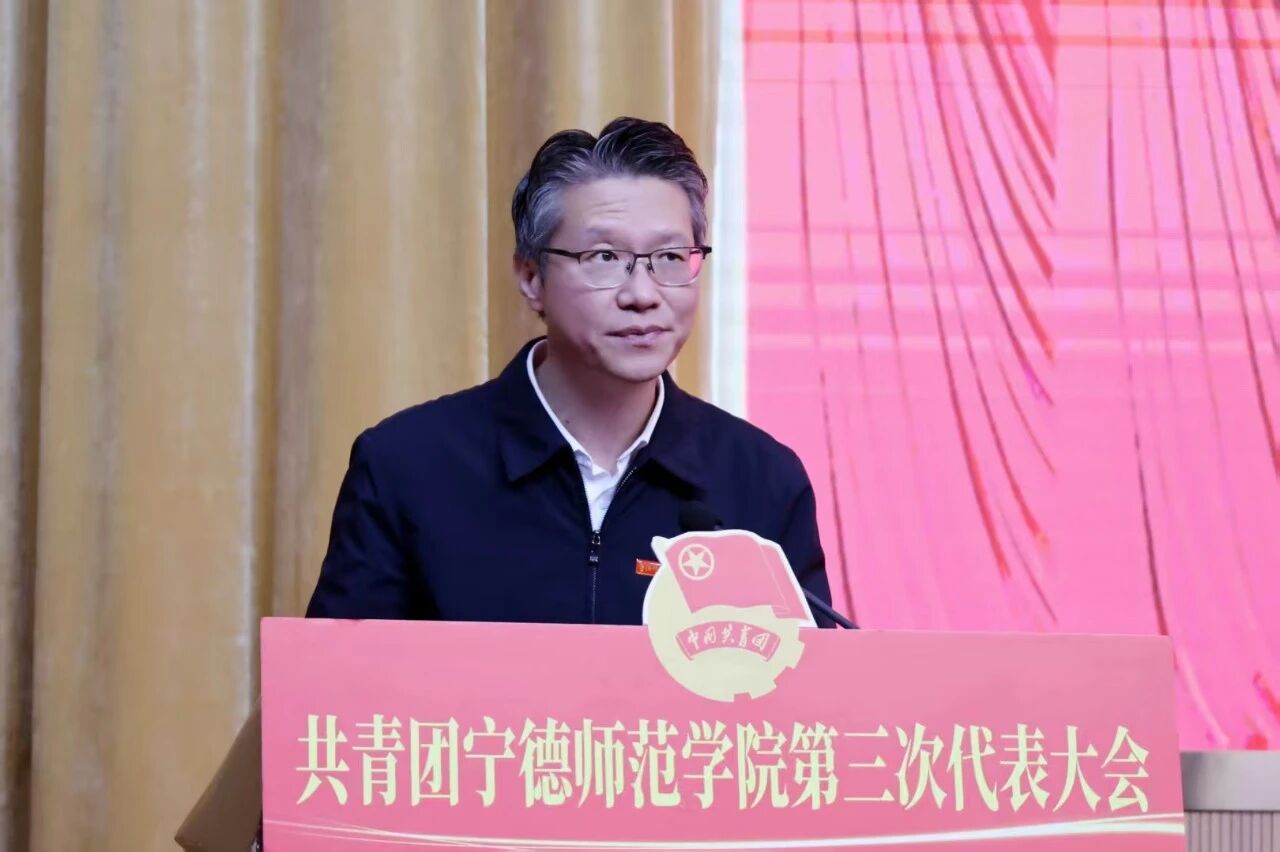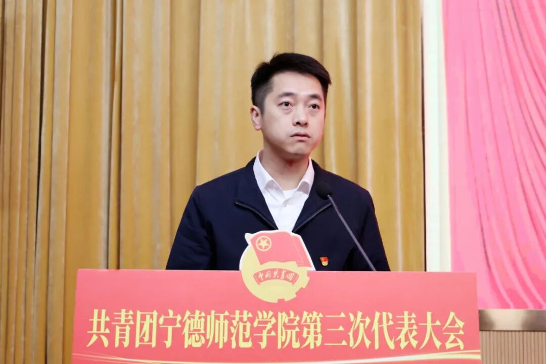 周伟峰代表共青团宁德市委向大会的召开表示热烈祝贺,他充分肯定了学校共青团在强化思想引领、服务青年成长、活跃校园文化、加强自身建设、承接全团重大任务等方面取得的显著成果,他希望学校各级团组织坚持为党育人,引导团员青年坚定不移听党话、跟党走;当好桥梁纽带,引领广大青年学子建功立业;勇于自我革命,深化团学改革、全面从严治团,在中国式现代化宁德实践中书写青春篇章。