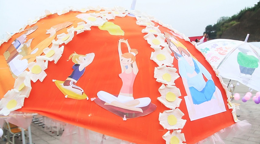 在雨伞创意设计的环节,同学们围绕“母亲,您辛苦了”这个主题来设计。来自生物系王同学“在八个伞面上分别绘出从小到大母亲对孩子关爱的画面。出生、生病、上学时等画面来体现了母亲对孩子无微不至的照顾。”中文系同学的作品则以电话为造型,将中国剪纸和《游子吟》相结合。“是想告诉大家即便离家再远,也要常给母亲打电话,不要让母亲担心。”