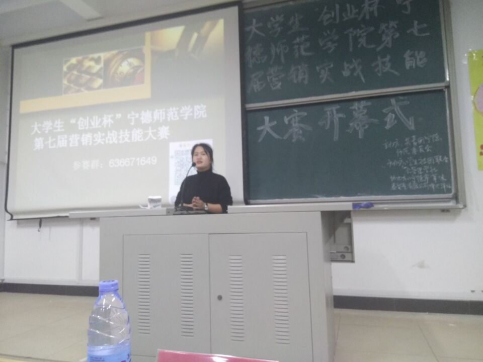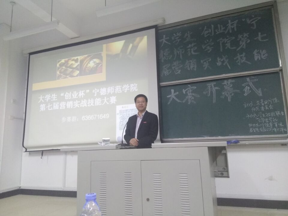 2017年11月8日晚上18:30,经济管理学院成功开展了第七届“创业杯”营销实战技能大赛开幕式,本次竞赛由共青团宁德师范学院委员会主办,管理学社承办,宁德市莘味泰贸易有限公司嘴巴驿站协办。出席本次大赛的老师有经管院院长游国斌、副院长邱汉周、党委书记郑立文、党委副书记陈新柯、市场营销教
