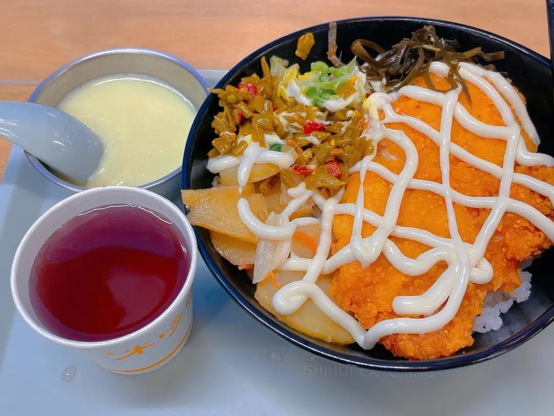 招牌鸡排饭鸡排香酥里嫩,搭配赠送的蒸蛋,绝对是舌尖上的美味!