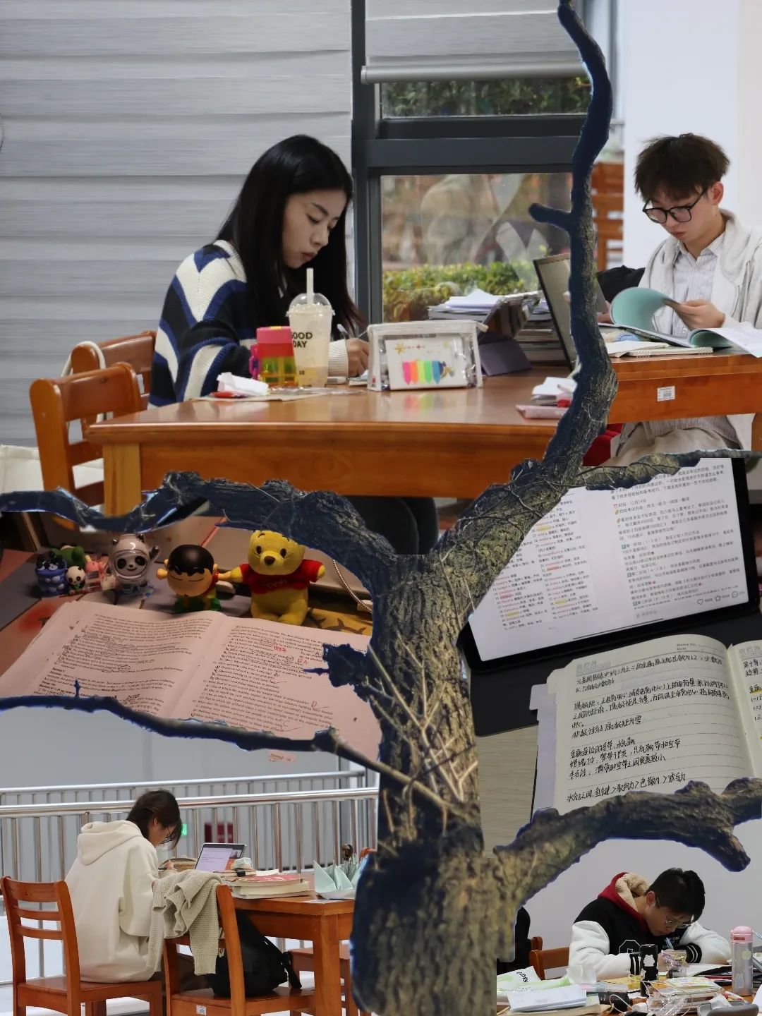 框住了伏案疾书的同学