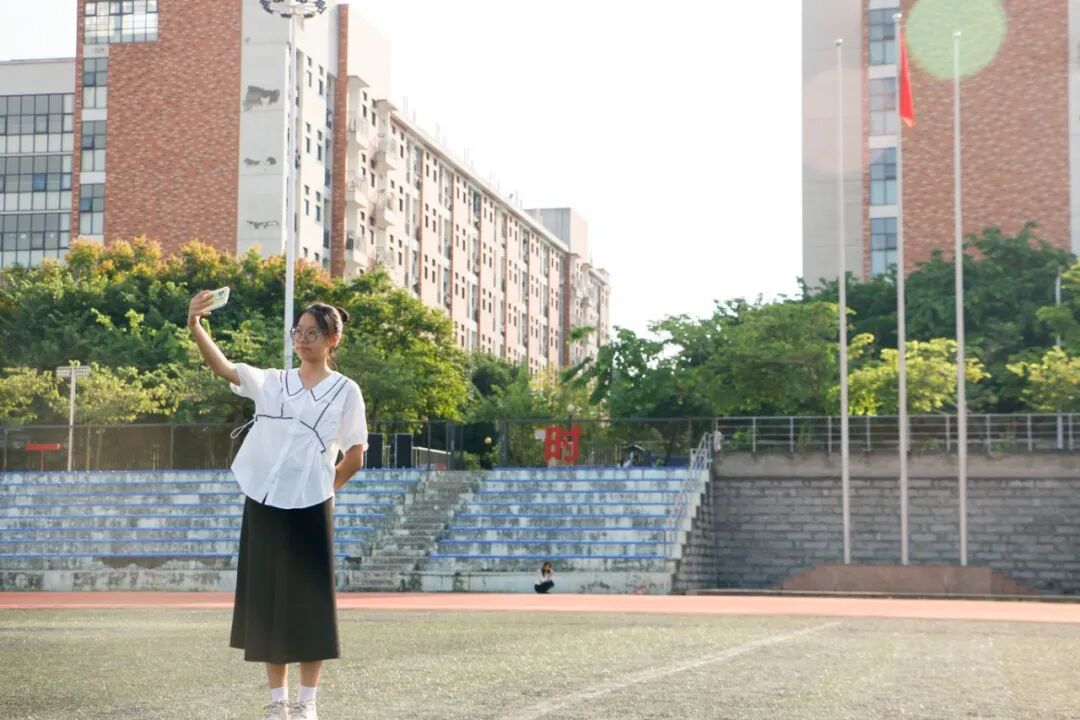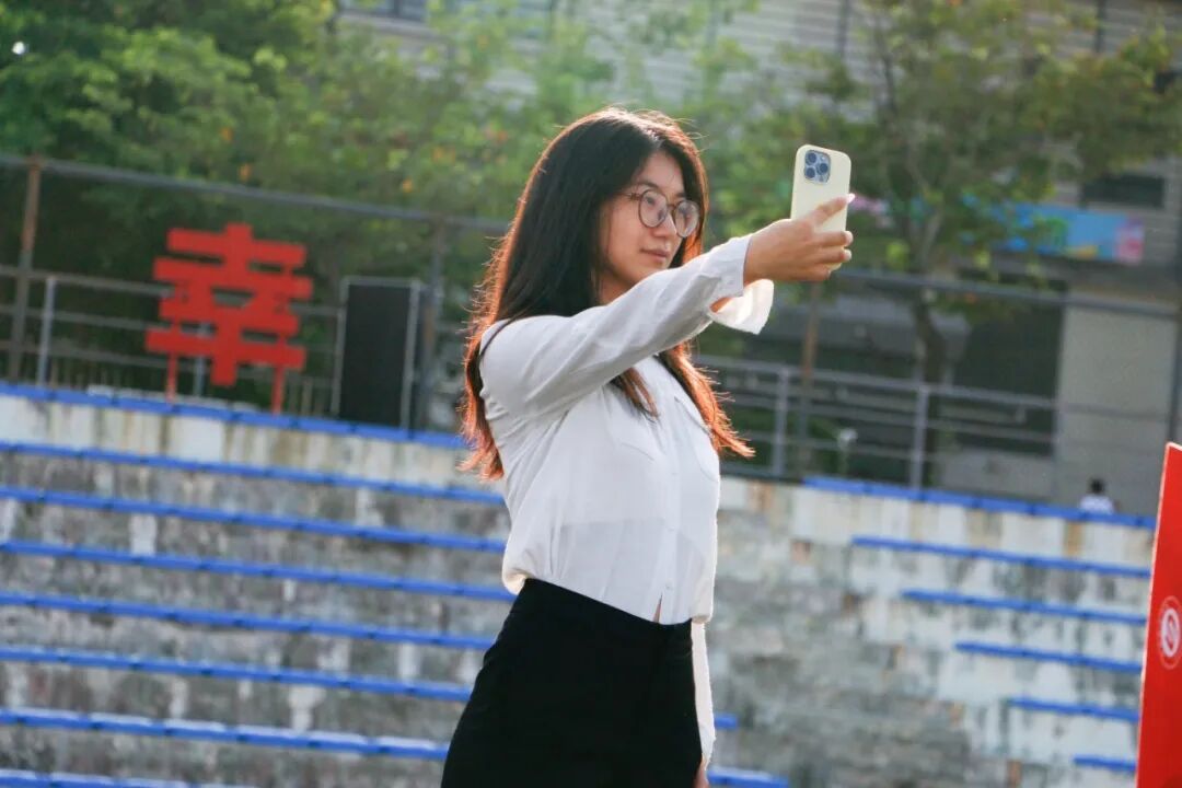 升旗仪式结束后,不少同学仍忍不住回头望一眼迎风飘扬的国旗,还有人掏出手机,笑着与杆顶的“中国红”定格下同框瞬间。红色的旗帜在微风中舒展,鲜红的色彩映衬着宁师er们的笑脸,格外动人。