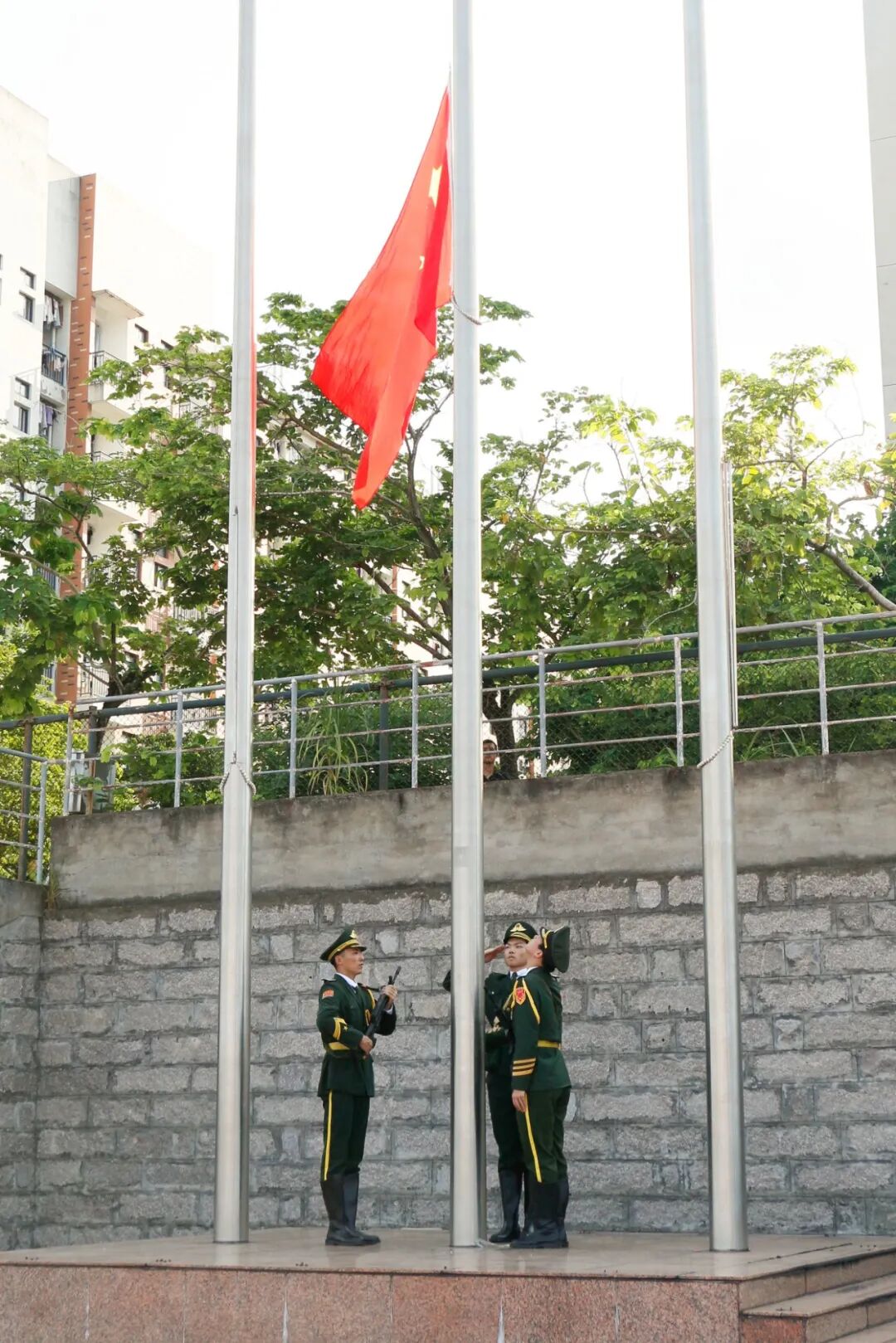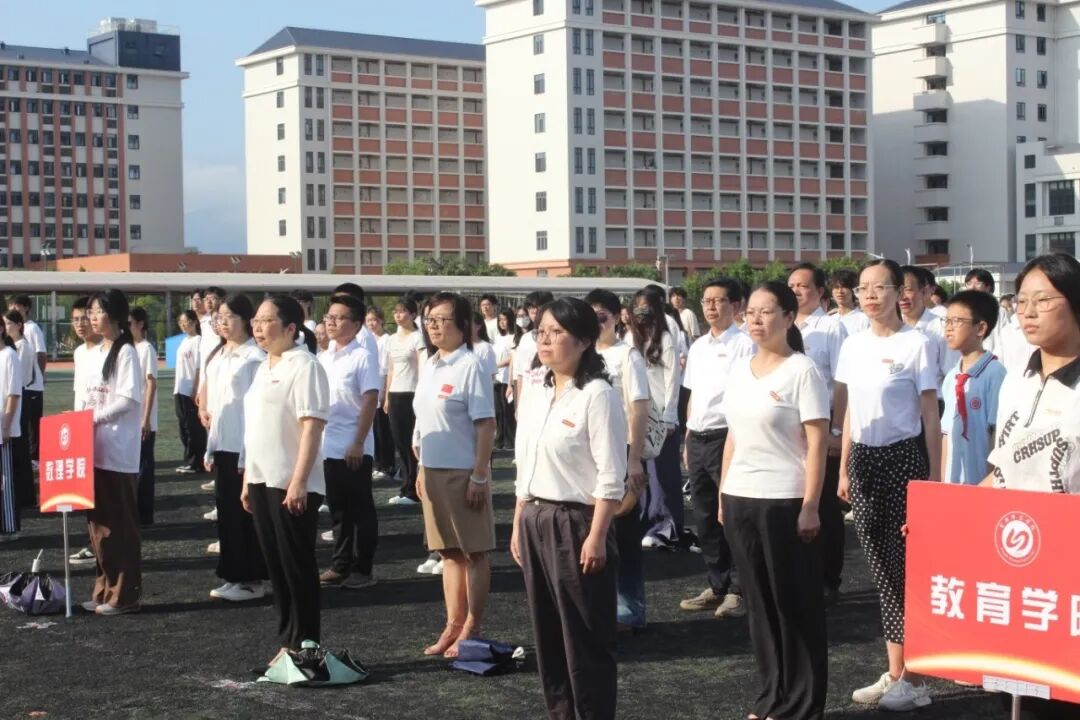 朝阳跃出教学楼的楼顶,温暖的晨光温柔地洒向操场一侧的旗杆。当熟悉的国歌前奏响起,现场气氛愈发肃穆庄重,所有人的目光都聚焦在旗杆之下。