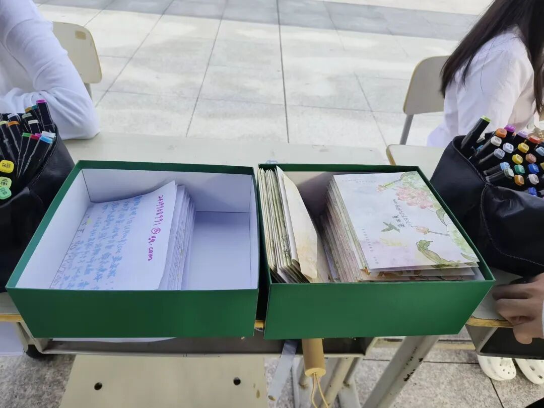 活动以“情感表达与时光留存”为核心,分为场地布置、信笺书写、自主投递(“时光胶囊”封存或“树洞”匿名公开)及后续整理归档等环节,共计200余名学生参加。本次活动的开展,不仅提高了学生们关注内心、表达情绪的健康意识,还有利于培养学生自我疏导、情感管理的能力。同学们纷纷表示,这种书信形式既复古又治愈,既能与自己对话,也对未来的回响充满期待。