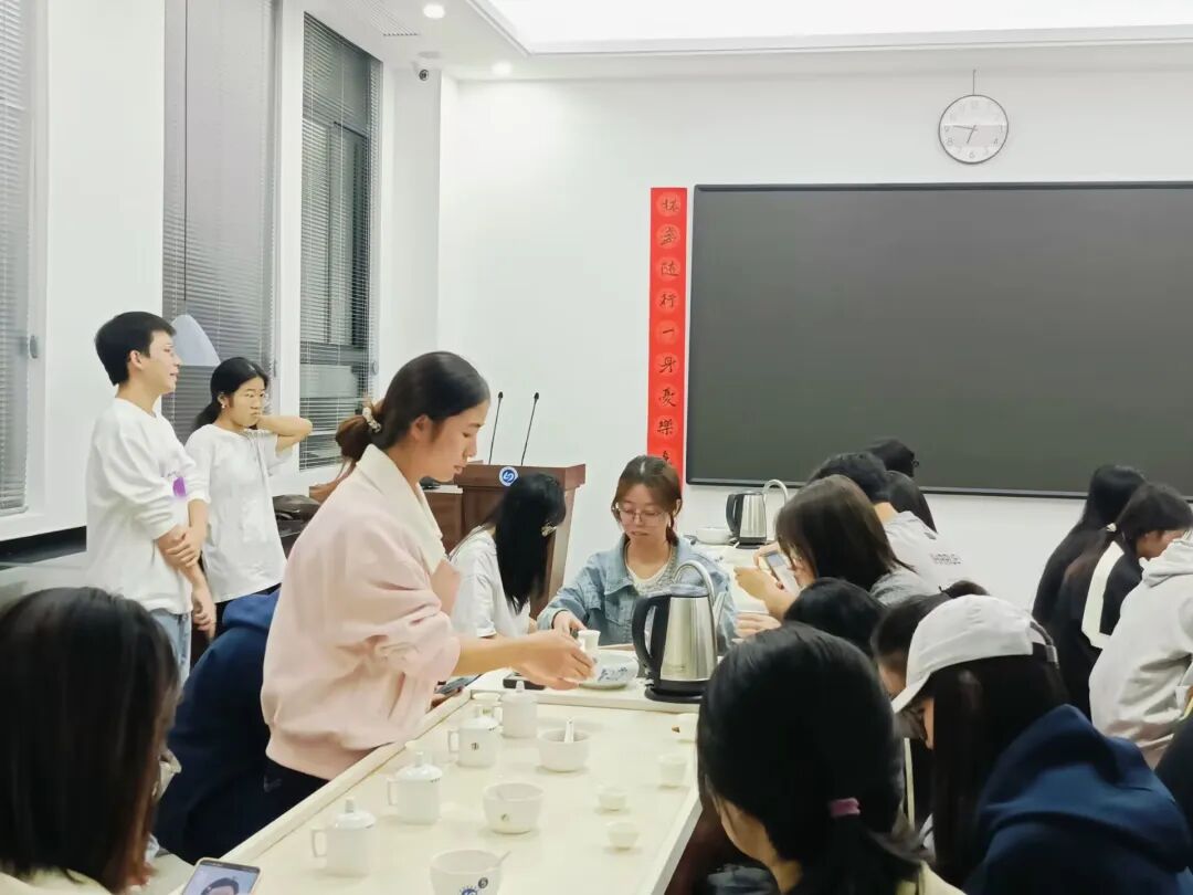 活动以沉浸式茶文化体验为核心,分为干茶鉴赏、冲泡演示、互动交流与品茗实践等环节,共计30名学生参加。本次活动的开展,不仅提高了学生们对中华传统茶文化的认知与审美意识,还有利于培养学生静心专注、实践探究的能力。同学们纷纷表示,此次活动让他们全方位感受了茶汤的韵味,加深了对传统文化的理解。