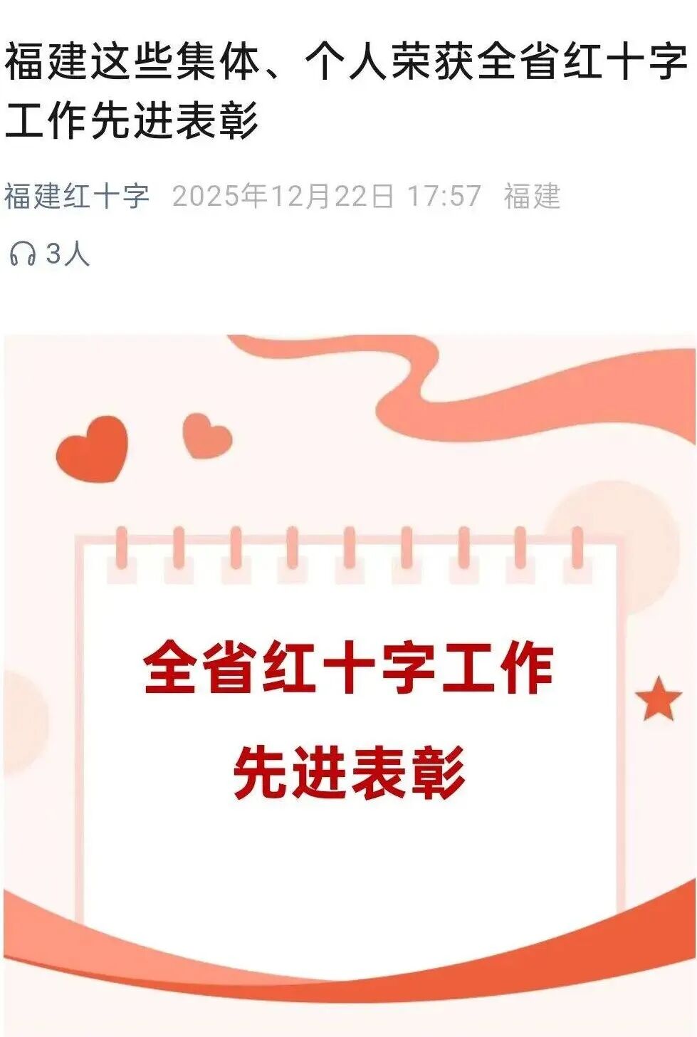 近日,福建省红十字会印发了《福建省红十字会关于表彰全省红十字工作模范单位和先进个人的决定》,我校红十字会凭借创新的工作模式、丰富的公益实践和突出的育人成果获评“福建省红十字工作模范单位”。这份省级殊荣的背后,是校红十字会对“人道、博爱、奉献”精神的生动践行,更是省红十字会对我校红十字工作的高度认可。