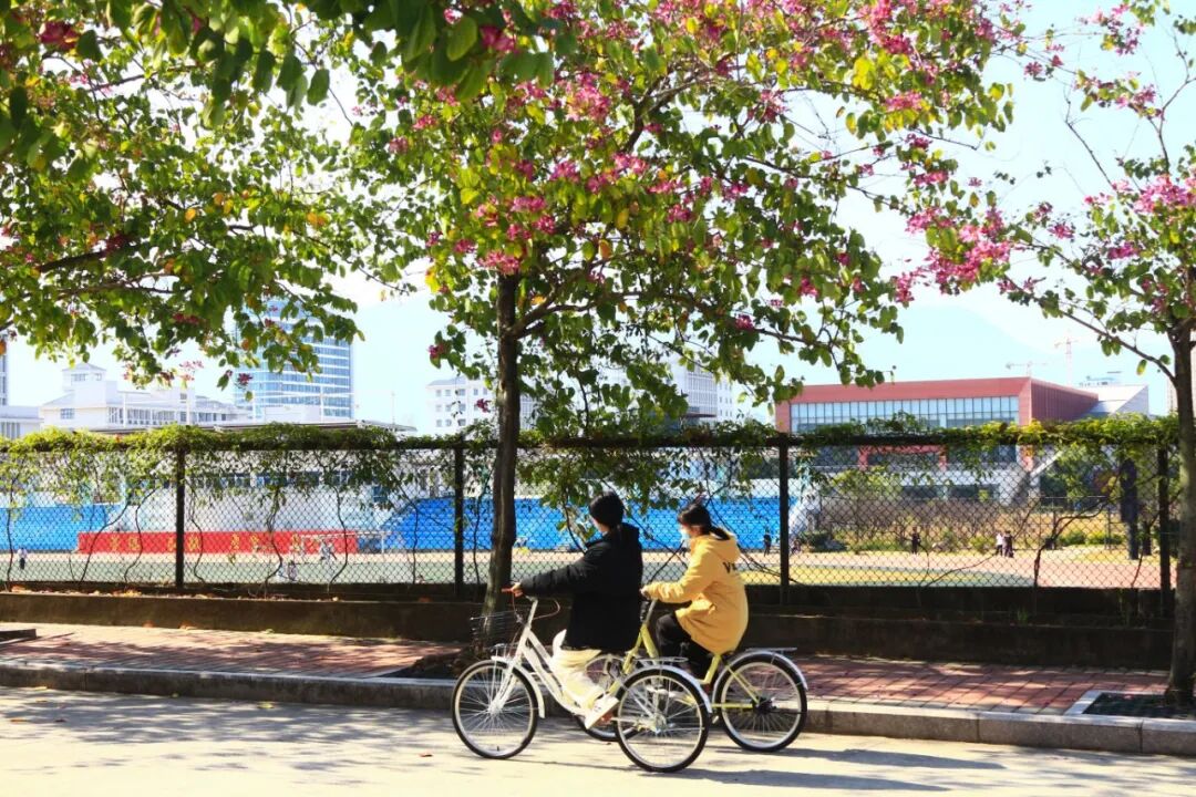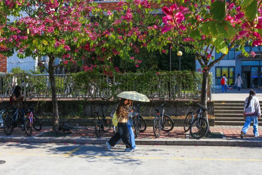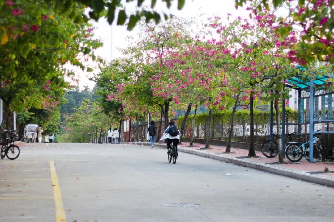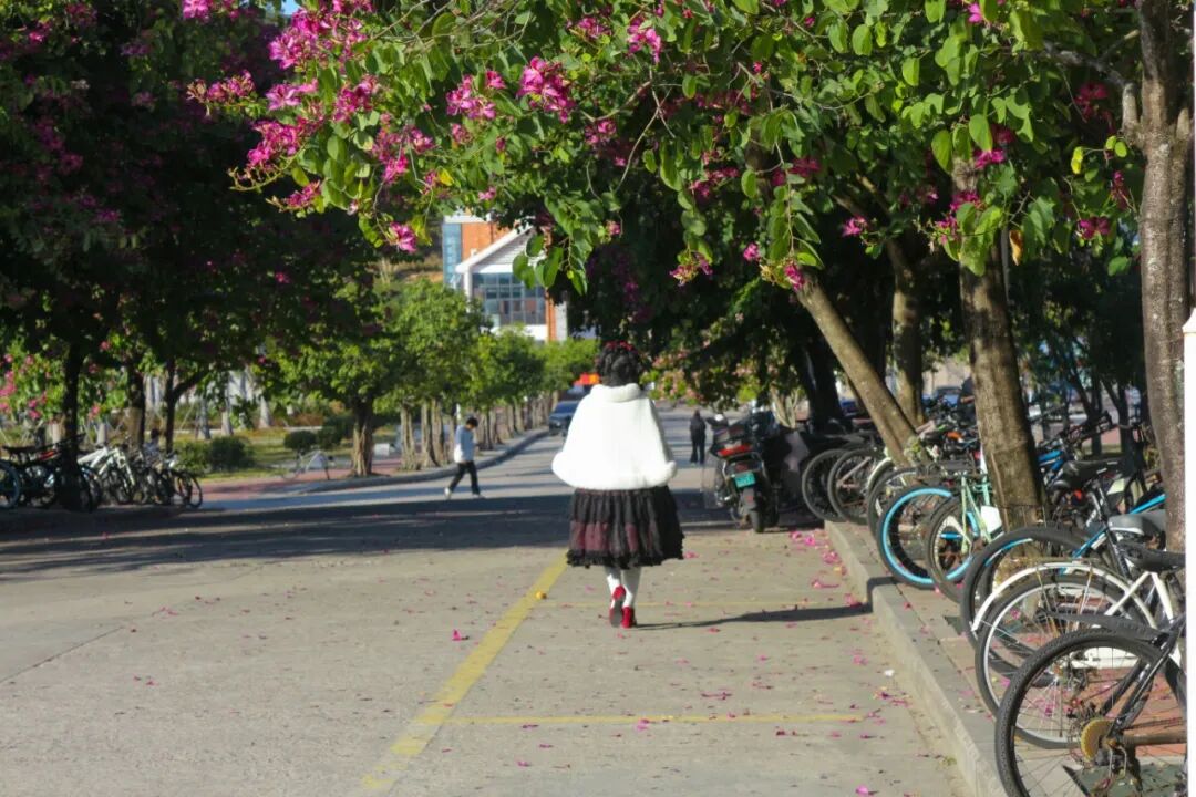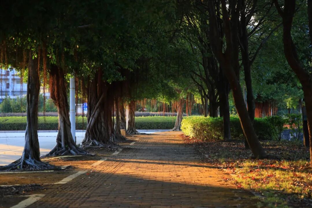 穿过宿舍楼前的林荫路