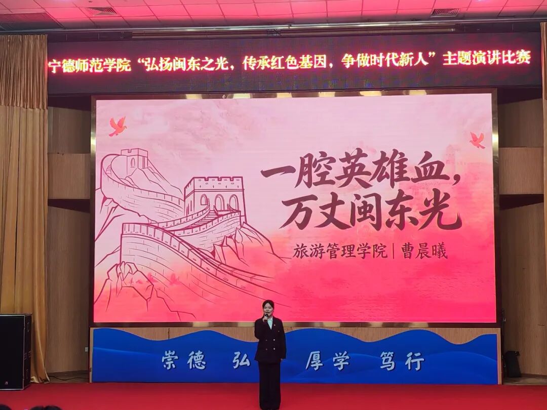 此次演讲比赛是一堂生动的沉浸式红色思政课,旨在进一步厚植青年学子家国情怀,激励广大同学赓续闽东红脉,以青春之力践行时代使命,让闽东之光永续闪耀,红色基因代代相传。