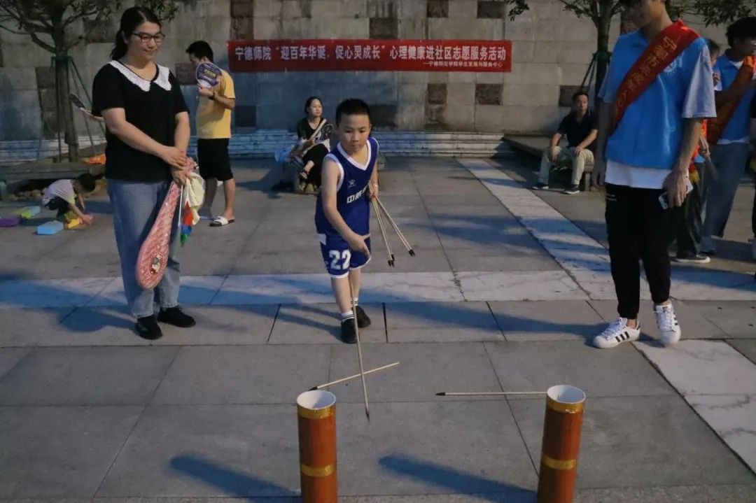在活动过程中,实践队还举办了多种类型的小游戏。在搭桥过河的游戏中,居民要把三块泡沫板整齐排好,走一步拿一块到前面铺路,这不但是考验一个人的平衡感,更是考验一个人的性格,若是不慌不忙地走好每一步,就能顺利“过河”;若是急躁地搬运,不免会因此失败。投壶与指压板跳绳,考验的是专注力与忍耐力。在我们开展的活动中,居民都积极参与,主动上前询问有关心理健康的知识,并表示了解了相关知识后,对事物有了更进一步的认识。填写调查问卷,参与游戏,本次实践活动的开展,对促进家庭和睦,释放心理压力,保持身心健康,提升居民的生活质量起着重要作用。