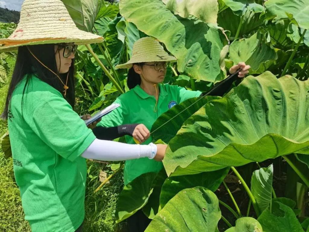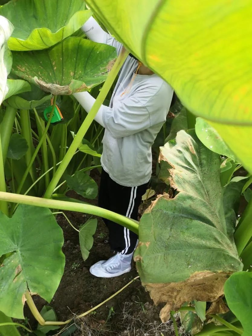 白天,治“芋”小分队各成员头顶烈日,脚踩泥泞,怀着要为福鼎槟榔芋病虫害防治打下可靠数据基础的决心,深入农田。对槟榔芋的生长情况和病虫害情况进行认真严谨的调查和记录。将课本中的知识充分运用到实处。纸上得来终觉浅,深知此事要躬行。大家都有克服困难的毅力和实事求是的做事态度。
