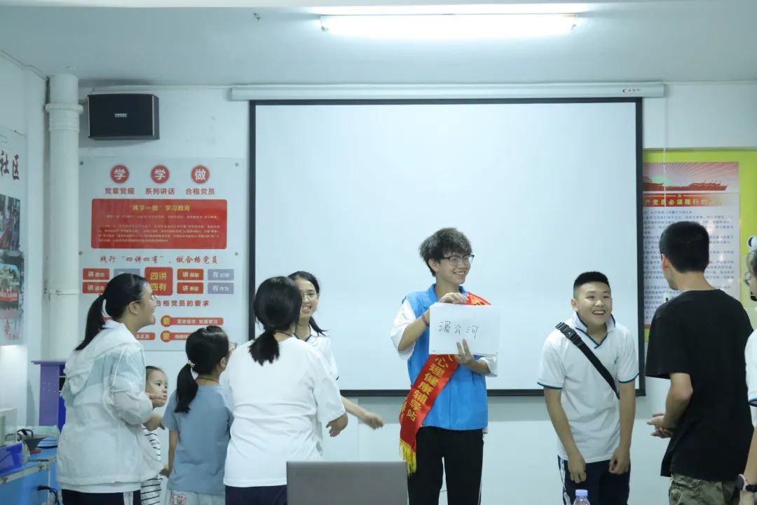 俗话说的好,“授人以鱼不如授人以渔”,考虑到面向的是学习压力较大的中学生群体,本次华建社区的社会实践活动不同于前几次的向青少年宣传心理健康知识为重点,而是注重引导学生自己学会如何去进行规划,如何去做好情绪管理,做自己的心理健康管理小达人,以及家长如何起到更好的帮助作用的问题。后期的素质拓展活动也更加注重引导青少年释放压力,为他们的假期生活鼓鼓劲、加加油。