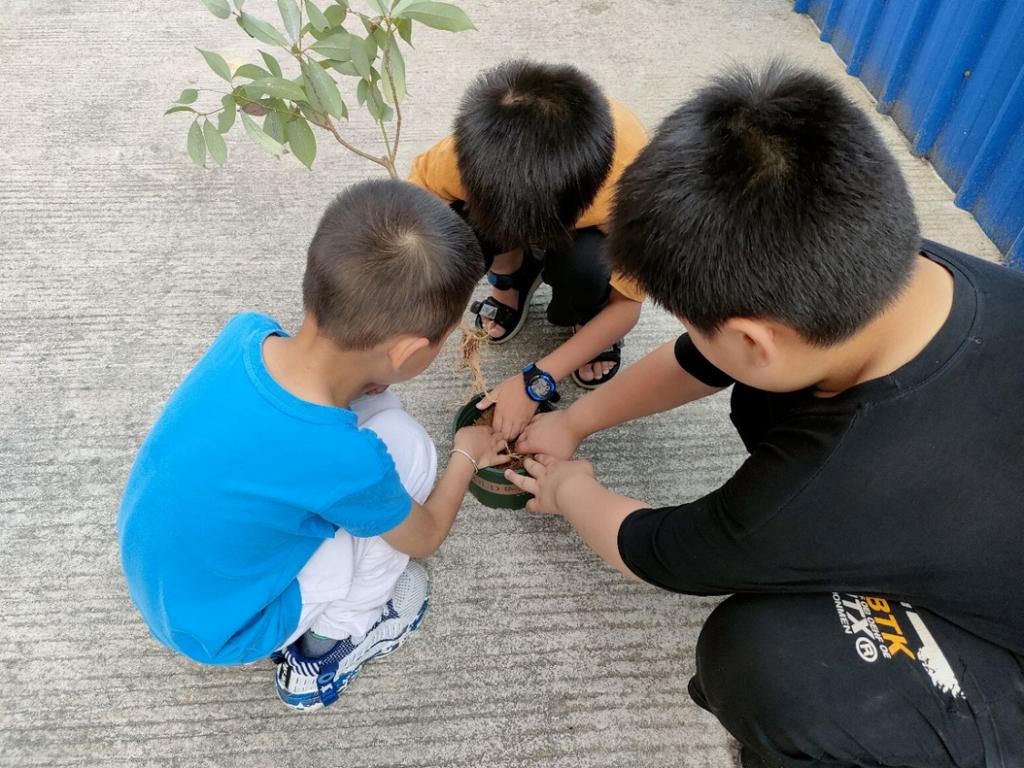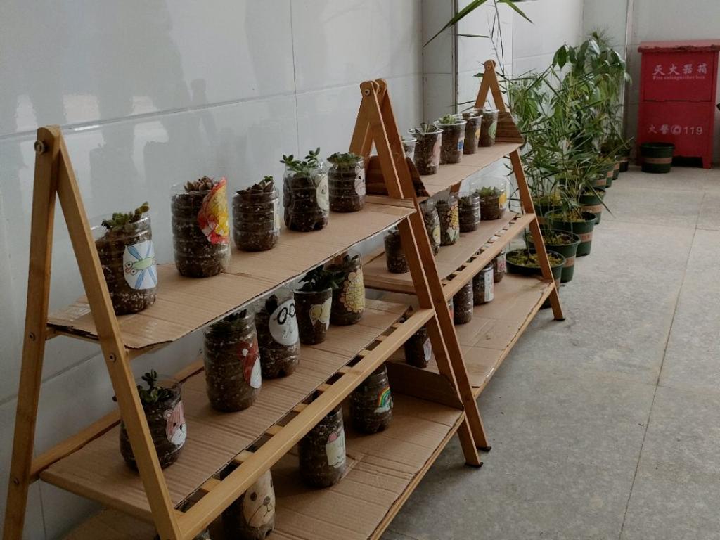 支教团队为学生们准备了小铲子、花盆、多肉和队员们收集到的植物,让学生们自己动手,种出属于自己的一盆花草,最后完成了一个漂亮的植物角。