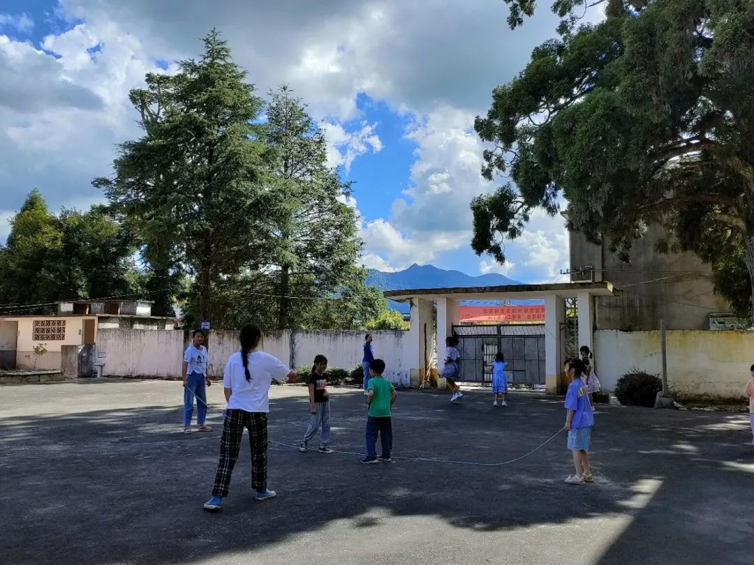 体育课上支教队员指导学生们规范跳绳,避免受伤