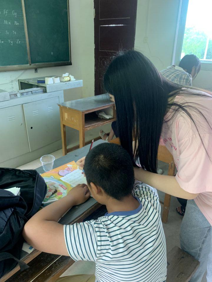 7月9日,支教队成员对当地孩子们进行暑假作业辅导、讲解,帮助他们学习知识,树立正确的学习态度。授予、宣讲知识,帮助学生巩固学习成果,激发他们的学习积极性与热情。此外,支教成员用通俗易懂的话语,以孩子们喜闻乐见的形式将课本知识传达出来,真正使孩子们热爱学习,并使之内化于心,外化于行。