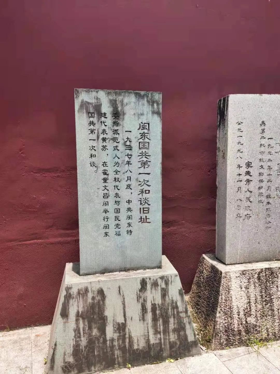我们小队在霍童古镇寻访了闽东国共第一次和谈旧址文昌阁,它位于福建省宁德市蕉城区福山街尾的天后宫。1937年7月,抗日战争全面爆发。同年8月下旬,闽东国共两党在霍童文昌阁举行第一次国共合作共同抗日和平谈判,进行了关于“停止内战合作抗日的协议”的谈判。