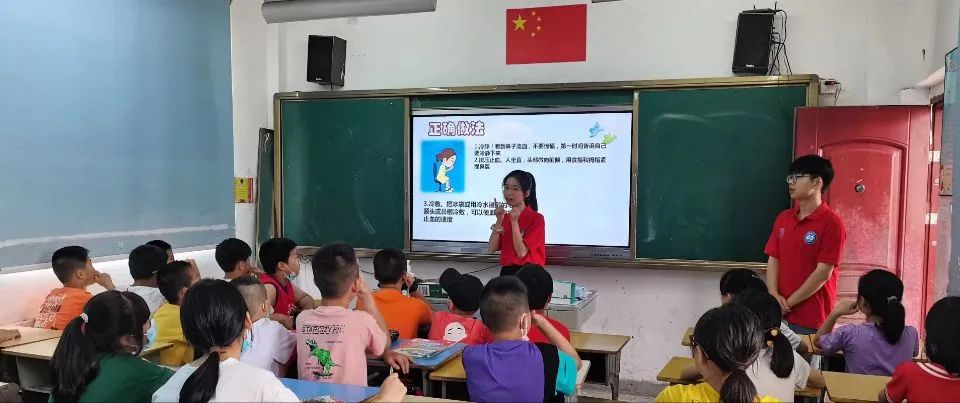 7月1日是赤溪夏村村支教志愿服务队实践的第五天啦。本着让小朋友们学会处理一些突发情况的初衷,新的一天的急救知识宣传课程开启啦!志愿者老师详细讲解了如何处理中暑、流鼻血、鱼刺卡喉等突发情况。在此次急救知识宣传课中,小朋友们认真听讲,踊跃发言,大胆地提出了心中的疑问,志愿者们也耐心地为小朋友们一一解答。
