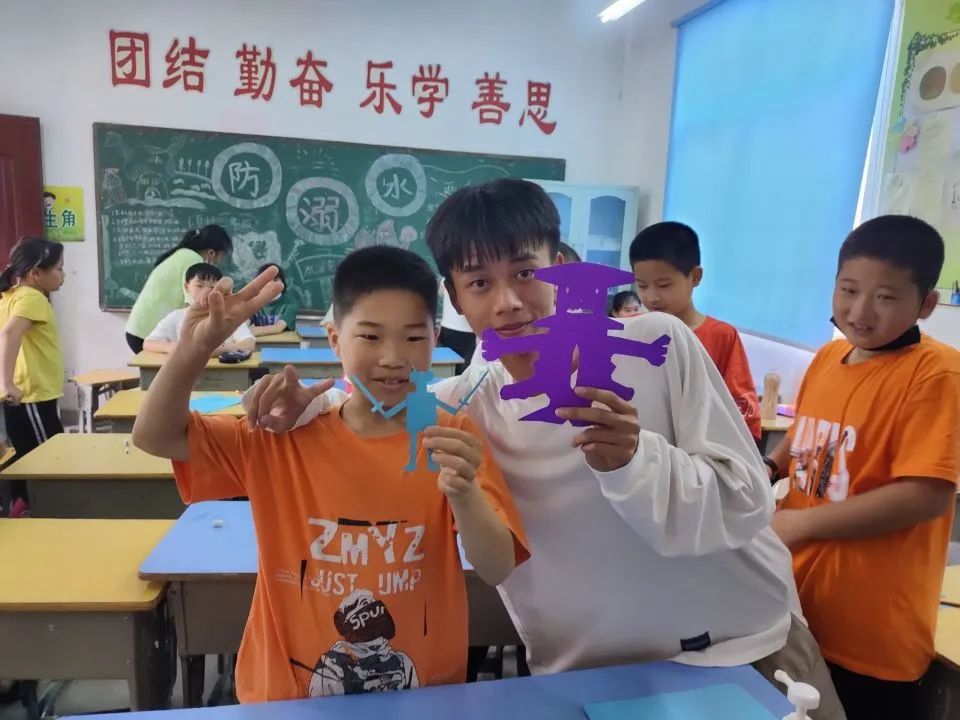 下午,由于天气原因,舞蹈课和体育课被取消了,改成了音乐课和剪纸课。在音乐课课堂上,小朋友们跟着志愿者老师一起学唱《孤勇者》。小朋友们的歌声嘹亮,眼神坚定,真正诠释了“孤勇者”的坚强与勇敢。而剪纸课上,志愿者老师则教授小朋友们制作简单的图案剪纸,提高他们的动手能力,发挥小朋友们丰富的想象力,那一张张剪纸映射的大概是他们多彩童年的剪影吧。