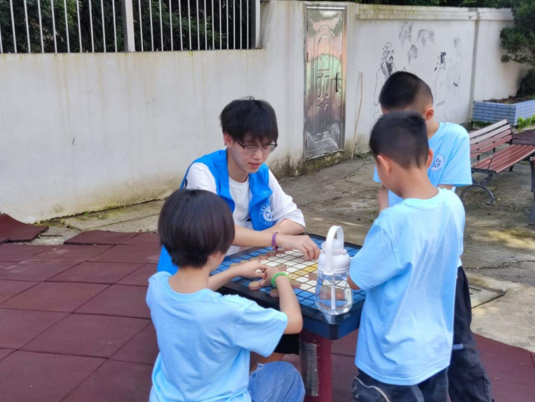 团队成员沈佳程在教小朋友们下象棋
