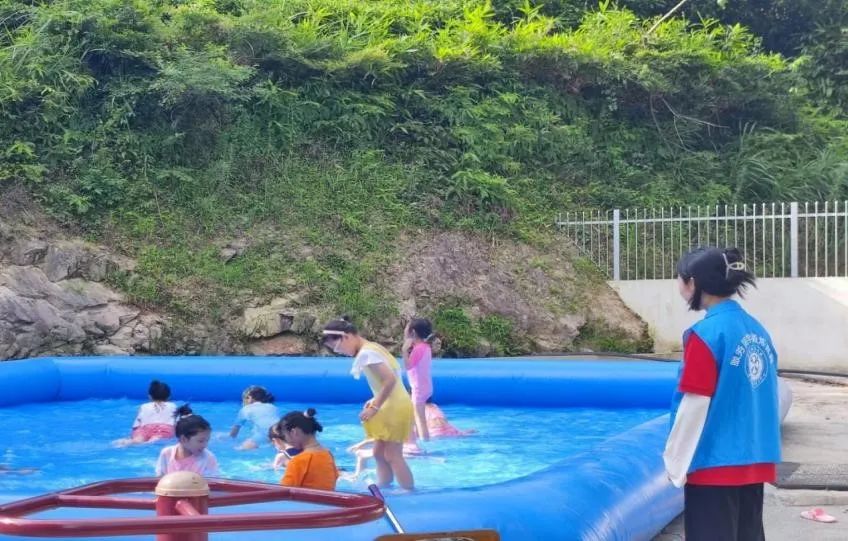 游泳运动可以提高孩子免疫力,增强孩子们肢体协调能力。团队成员张楠、陈玥兵在游泳课上维护孩子们的安全,让孩子们能够自由自在地在泳池中玩耍。夏日蝉鸣,轻风微凉,孩子们在嬉戏中学会互助,在学习中得到成长。