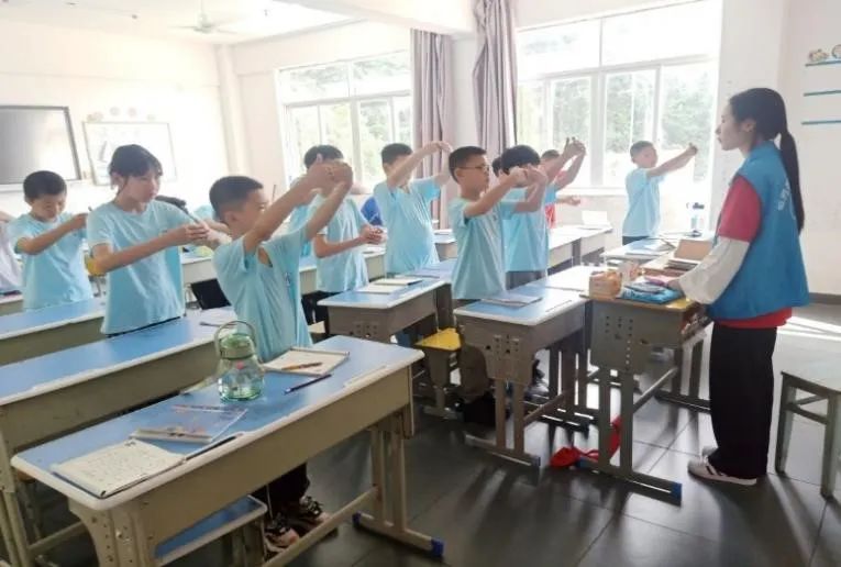 “笔势雄奇,姿态横生,出于无心,是其手心两忘……”硬笔书法可以端正姿态,磨炼意志。团队成员杨丰宁、谢小情一笔一划地教孩子们练习硬笔书法,让孩子们在写字过程中感悟美、创造美。课堂上,孩子们认真专注,聚气凝神,在课堂氛围的潜移默化中提高专注力。