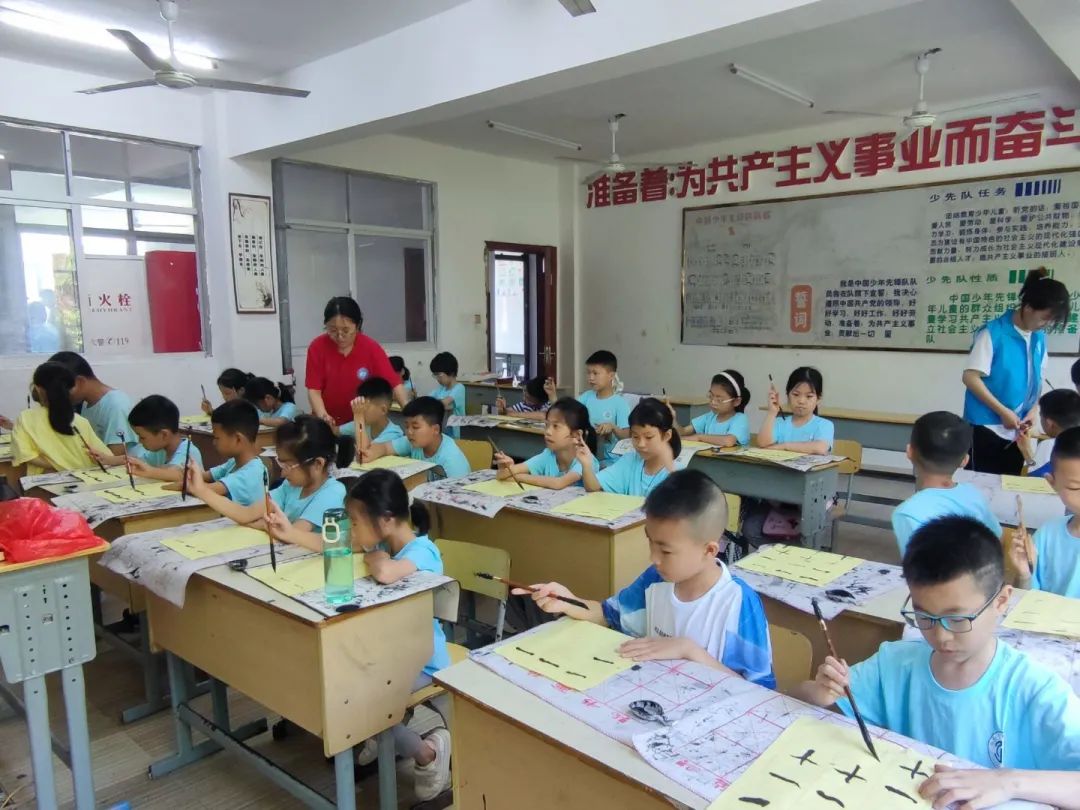 “字如其人”先见其字便知是为何人,这就是“字”的魅力。写的一手好字,会给人留下良好的印象。练习书法能够修身养性,怡情健体,培养孩子的审美能力,这也是支教开展书法课程的原因。团队成员杨丰宁、谢小情从握笔姿势、书写坐姿教导孩子们最基本的书写要求,接着开始教授孩子们学习基本笔画:横、撇、提、勾、点、竖……孩子们凝神聚气,伴随着古典音乐静心书写,磨练意志。