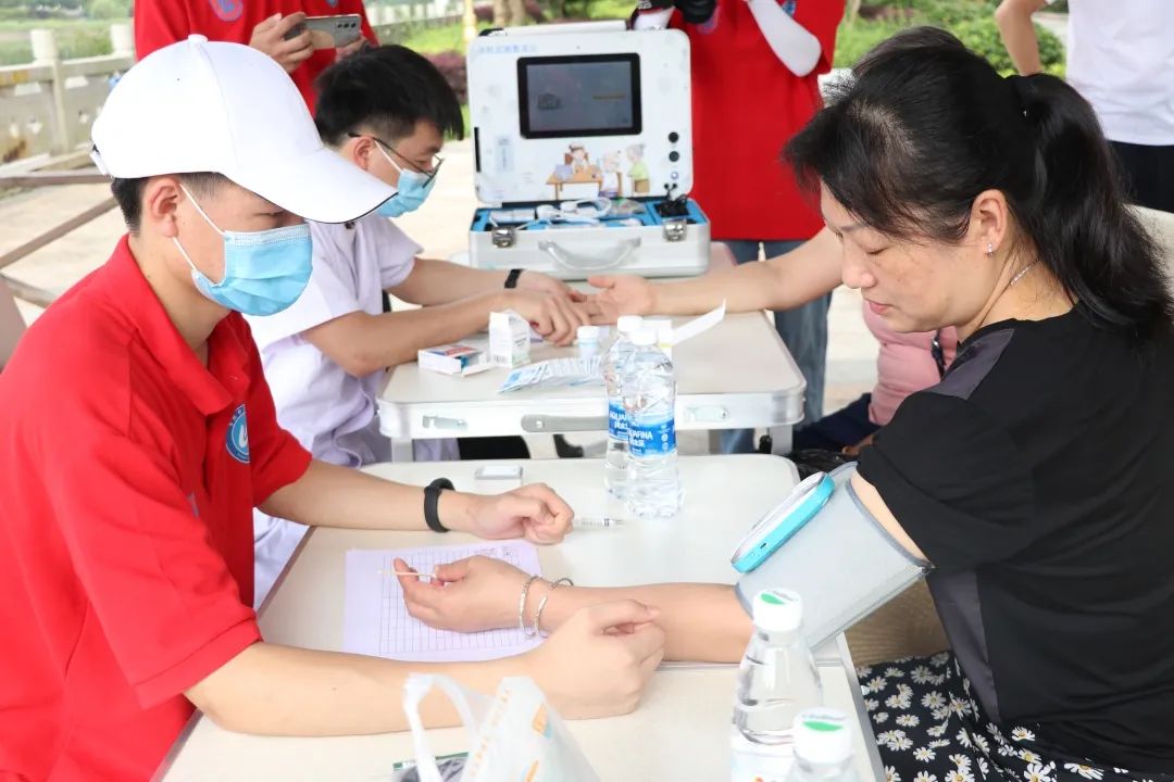 6月29日,宁德师院医疗箱体检志愿服务队走进亿利社区,为老人们进行血压、血糖、心率等健康检查。