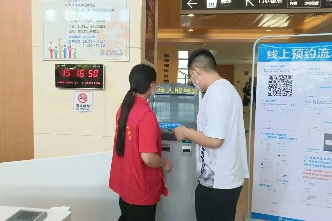 6月30日到7月1日,团队成员到宁德师范学院附属医院参加文明导医的志愿活动。在门诊部护理长及各位带教老师的指导下,同学们分别在门诊大厅及其门口展开了文明导医志愿服务。志愿者们耐心指引,态度亲和,热心地帮助前来就诊的病人进行挂号、预约检查、医保结算等一系列就诊程序,遇到行动不便或是不会操作自助机的老年人,志愿者更是主动上前帮助。通过志愿导医服务,可以更好地帮助就诊者选择科室就诊,便捷地进行一系列的医疗就诊服务,让医疗服务尽显人文关怀。