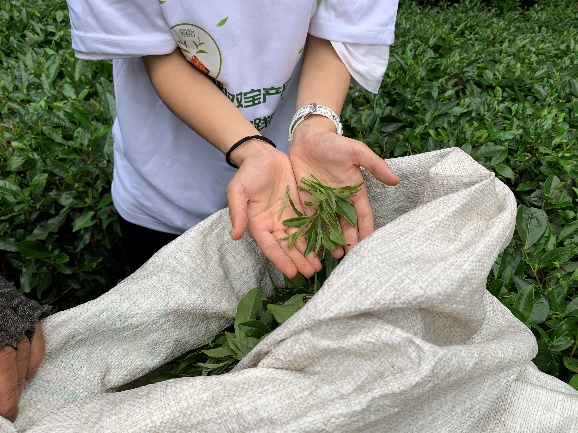 茗香久远,绿茵盎然。在实践空余时间,团队成员们来到了茶园。茶树排列错落有致,漫山遍野的茶树与湛蓝澄清的蓝天相辉映,形成了一幅优美的风景画。走在小道上,阵阵清香扑鼻而来,宛若人间仙境。队员们向正在采茶的茶农学习采茶的技巧与注意事项,观察茶树的外观与品种,了解茶农们对茶园生活的看法与感受。茶农们都认为福鼎白茶产业的发展,改善了他们的生活条件,为他们创造了更多就业机会。福鼎白茶产业的奋斗史离不开茶农们的辛劳付出,同时茶农们也是福鼎市经济蜕变的见证者,为乡村振兴事业的发展注入了源源不断的活力。