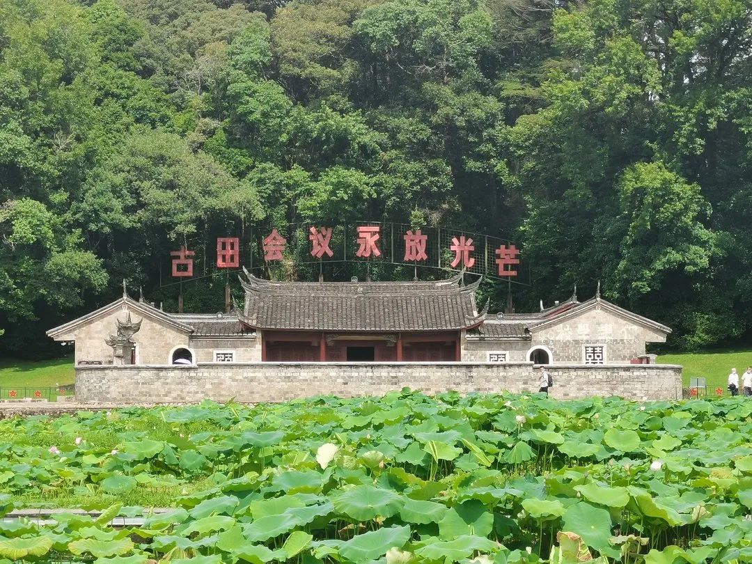 古田会议会址是一座清朝宗祠建筑,过去曾是廖氏宗祠,又称万源祠。这个曾经的革命圣地,如今已是旧貌换新颜,在古木参天的辉映下“古田会议永放光芒”八个红色大字格外醒目。一九二九年十二月,毛泽东、朱德、陈毅等在福建上杭县古田曙光小学领导召开了中国共产党红军第四军第九次代表大会,史称古田会议。明确了党对军队的绝对领导,用马克思主义建设党和军队,从根本上划清了新型人民军队与一切旧军队的界限,被称为中国共产党建党和建军的纲领性文献,在人民军队建设史上新的里程碑具有深远的意义。这里是中国红色军队的发源地和创建地之一,中国人民军队的成长、壮大与这里紧密相连。古田会议旧址史册,随着时光的飞逝而显得更加熠熠生辉,必将成为闽西红土地上最为显赫的革命圣地。实践队在参观毛主席纪念园时,感受着毛主席光辉形象,我们自发向毛主席雕像三鞠躬并环绕一周,深切缅怀革命先辈为中华民族解放事业做出的巨大贡献。