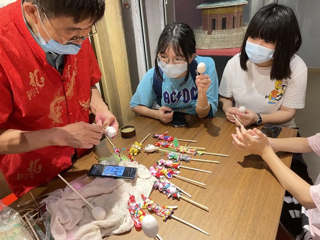 接着,实践队成员参观并了解了泉州各项非遗项目,并参与了泉州妆糕人的制作体验。各个人物或卡通形象在传承人妙手下惟妙惟肖,令人大为感叹。在泉州妆糕人传承人的教学下,实践队队员学习完制作流程,动手实践制作。在“搓、捏、挑、团、揉、按、压、擦”等多种捏塑手法下,队员们完成了冰墩墩形象的妆糕人制作。“纸上得来终觉浅,绝知此事要躬行”,动手实践感受非遗项目,给队员们带来了深刻的感受,更好地助力传承非遗。