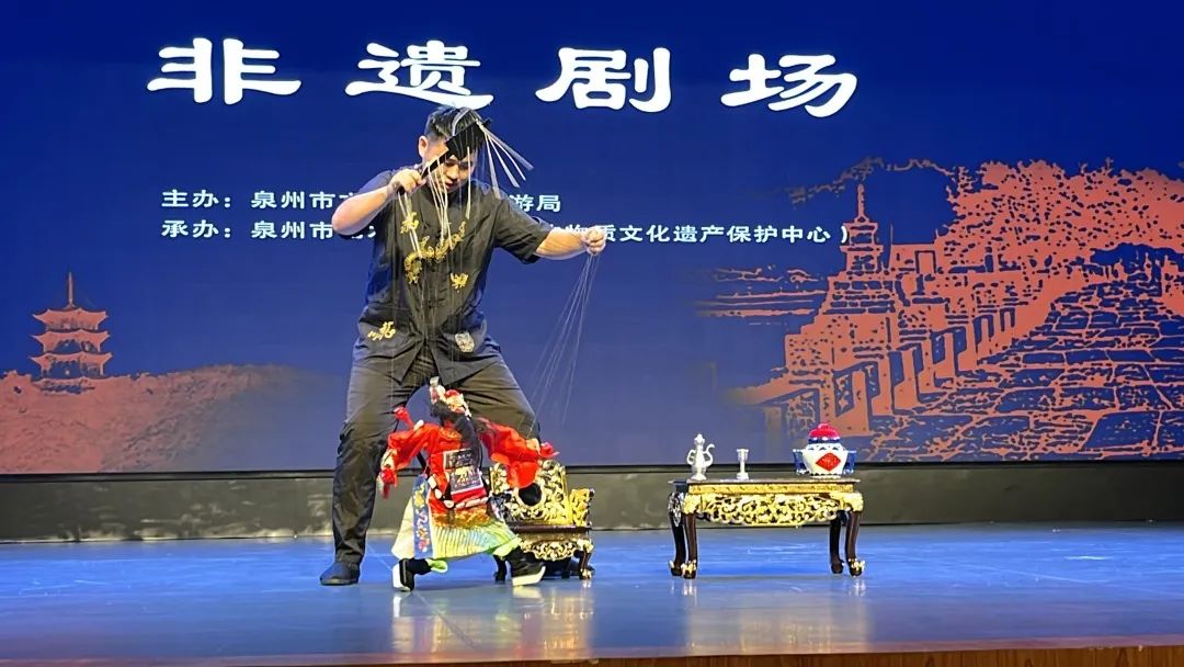 实践队前往泉州非遗馆,参观木偶展览,了解木偶的不同角色,熟悉了木偶雕刻的制作流程,并现场观看非遗剧场的提线木偶戏表演。在演员十指操纵丝线间,更加生动感受到泉州提线木偶戏“指尖悬丝,演绎人间悲喜”的魅力。