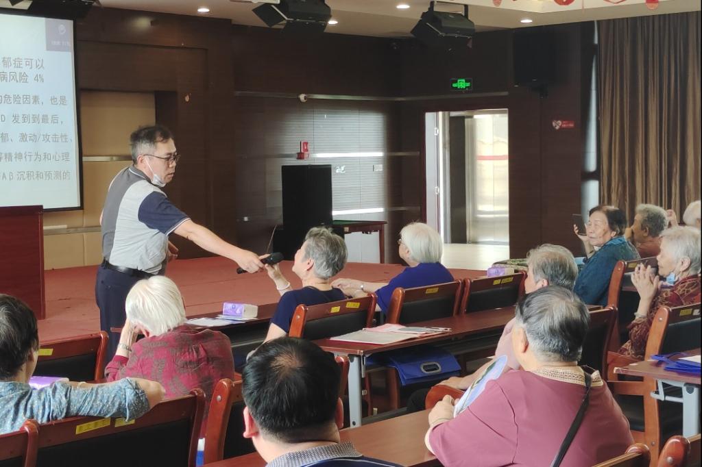 在苏裕盛老师的科普讲座上,讲解了八个导致阿尔茨海默病的危险因素,老师带动氛围,AD科普讲座,爷爷奶奶们认真专注地听苏裕盛老师的讲课,积极与苏老师互动,甚至还会向苏老师提问心中的疑惑。讲座结束后老人们也向我们分享了他们在讲座中所做的笔记,以及一些自己的个人经历来提醒我们如何预防阿尔茨海默病。在苏老师的讲解下,大家都对阿尔兹海默病有了一个全新的预防认识。