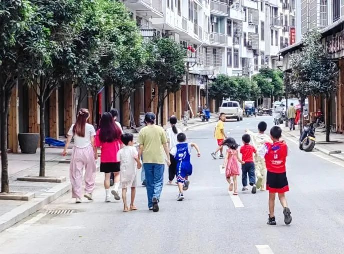 团队成员与孩子们一起去学校