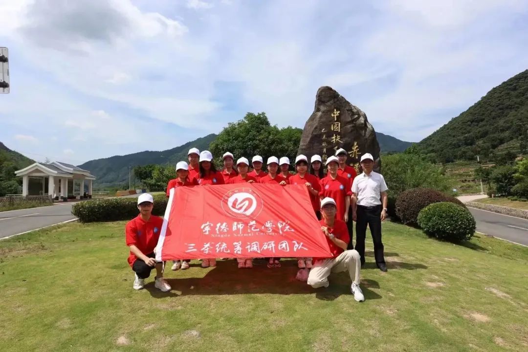 7月8日是暑期社会实践的第一天,"三茶"统筹实践调研团队从宁德师范学院出发,前往中国扶贫第一村——福鼎市赤溪村,通往赤溪的路林木掩映,越接近赤溪,树林越是葱郁,九鲤溪流淌在这山间谷底中,碧波荡漾,一排排竹筏沿溪而下,宛如画中,生机勃勃,生态条件良好。