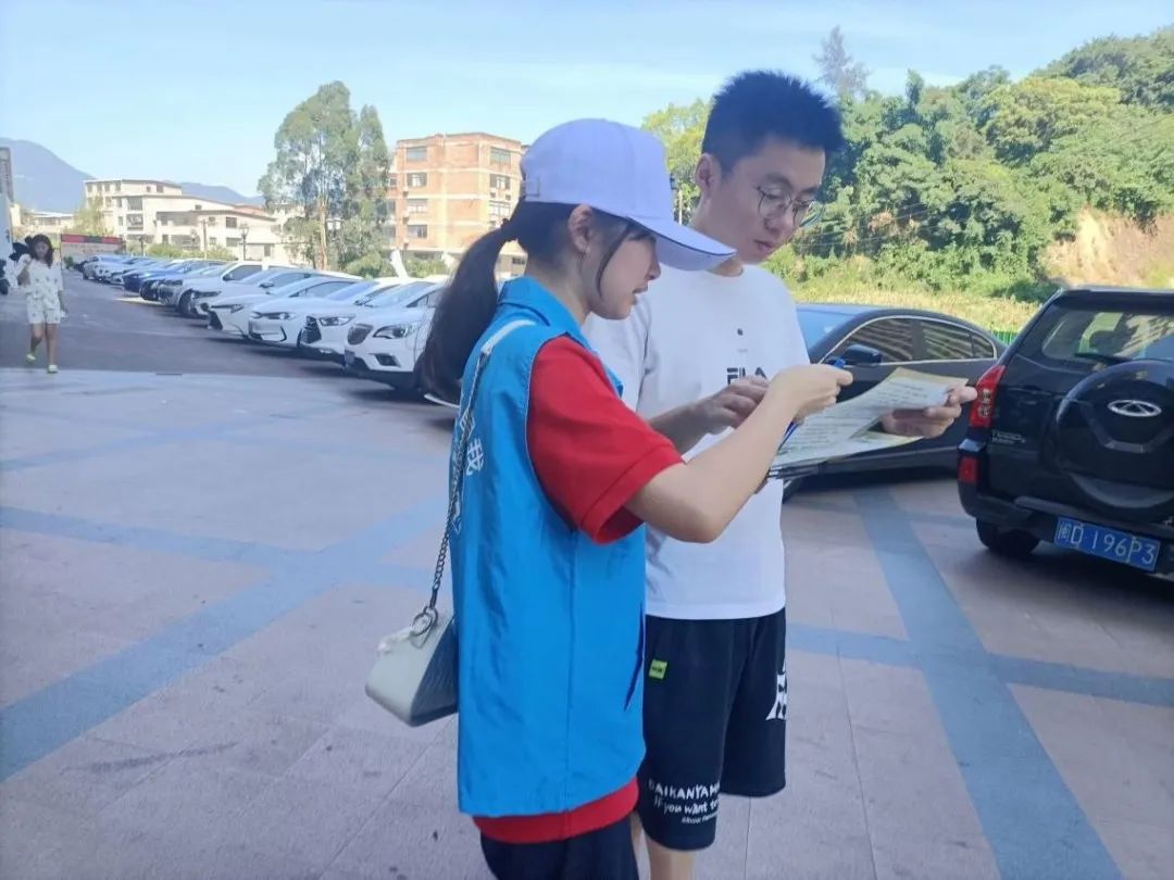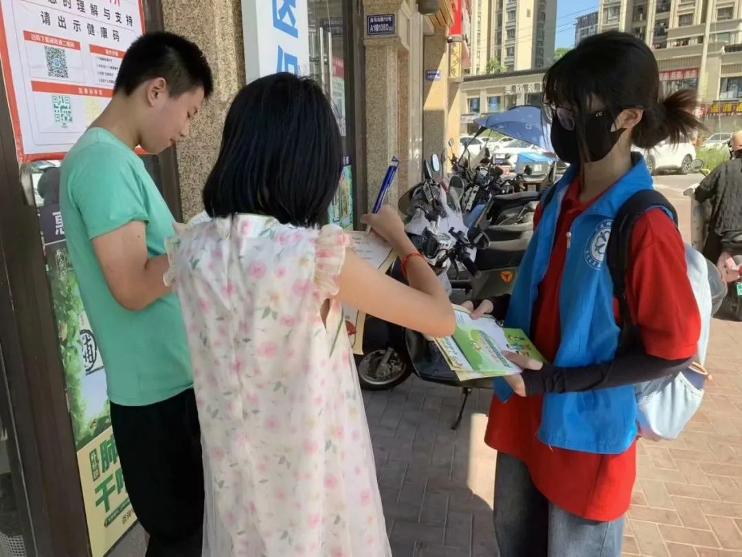 2023年7月8日,虽烈日当空,但大家依旧迎着酷暑前行,实践队来到了社会实践的第一站——东侨经济技术开发区迎宾社区。在队员的积极组织下,大家两两分组,分头行动,为迎宾社区附近的居民们仔细讲解了心理健康相关知识,耐心协助居民们填写问卷。同时我们还走访了社区里的商铺,在了解他们对孩子心理健康的重视程度后,围绕“未成年人的心理健康”相关知识,利用通俗易懂的方式向他们普及关注、呵护未成年人心理健康的重要性。在居民们及商铺积极友好地配合下,实践队顺利地完成了心理健康进社区的首次宣传活动。