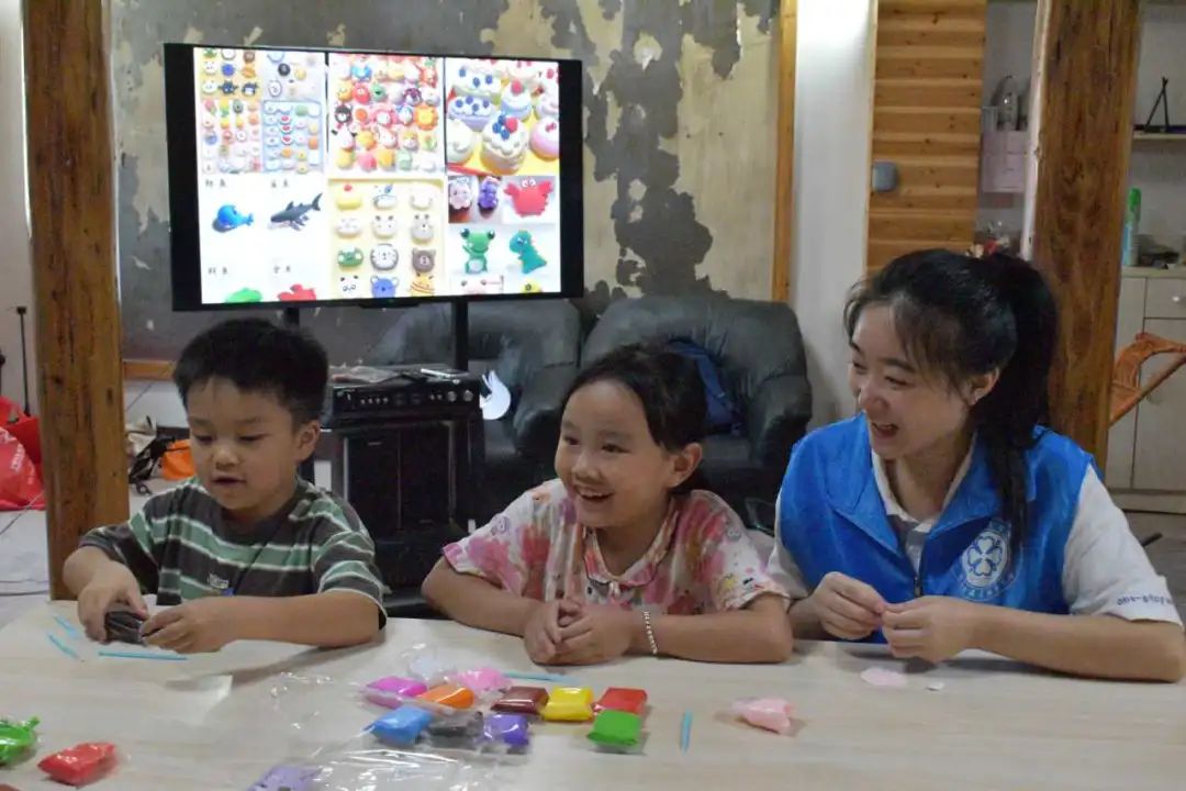 为了增强小朋友们的动手实践能力,活跃创新思维,支教团队特为小朋友们安排了粘土课。粘土色彩的交织勾勒出小朋友们心中五彩斑斓的梦,小巧的双手搭建了一个又一个梦幻的城堡。小朋友们兴致勃勃地创作着自己心目中美好的作品,他们创作的每一个瞬间,都为童年时光留下了浓墨重彩的一笔。