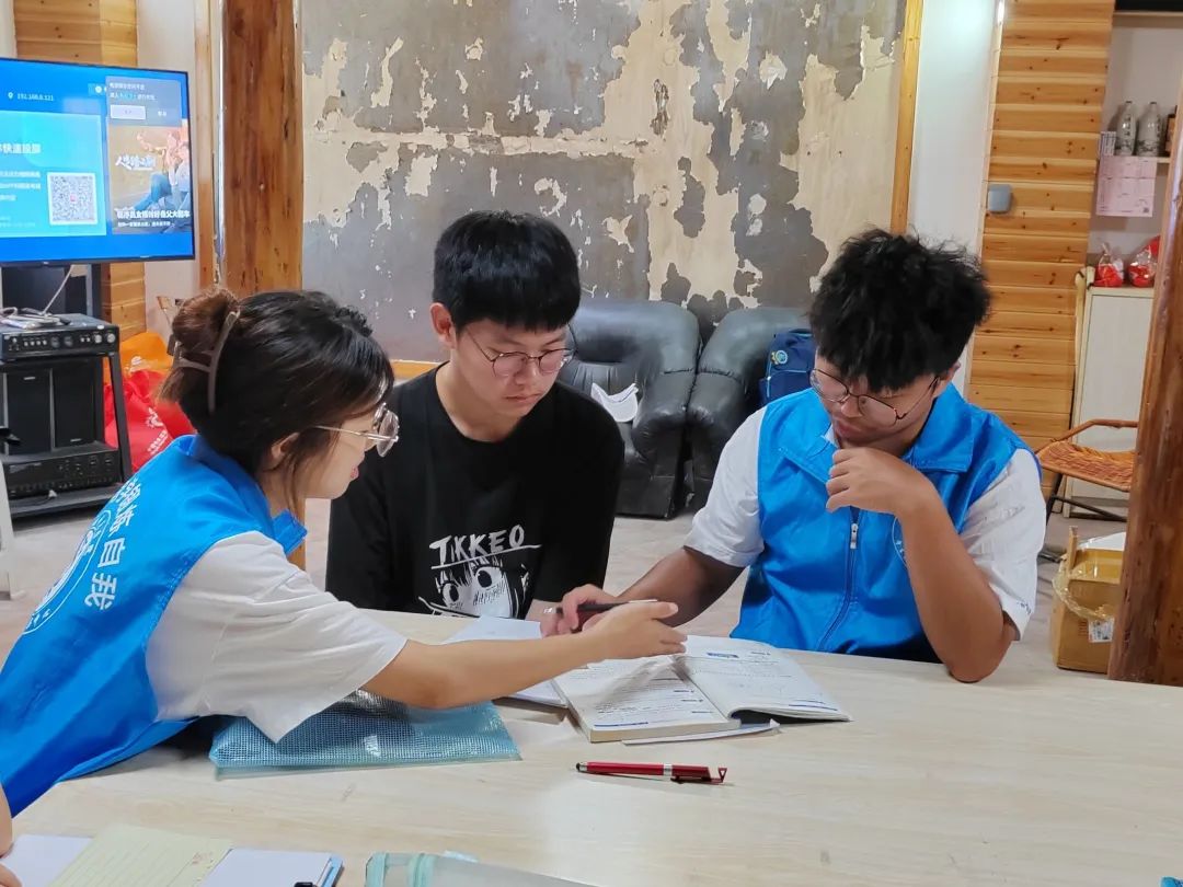 团队成员陈才、刘舒琪对初三学生进行作业辅导