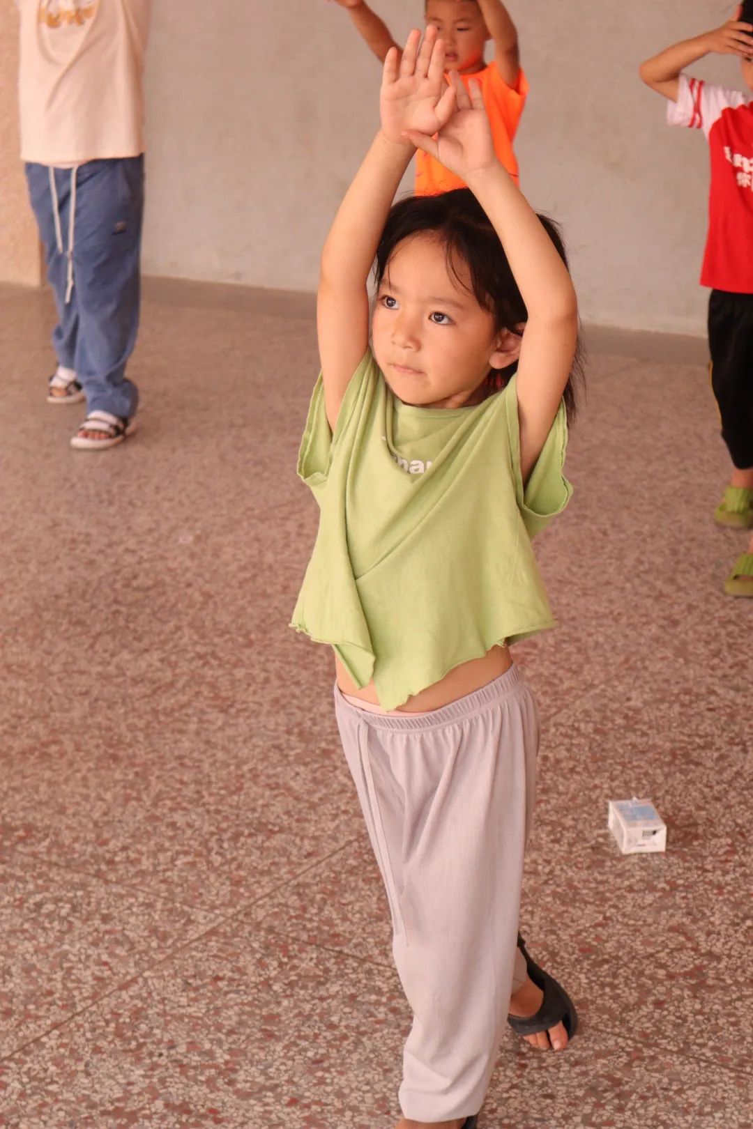 图为小朋友热身精彩瞬间