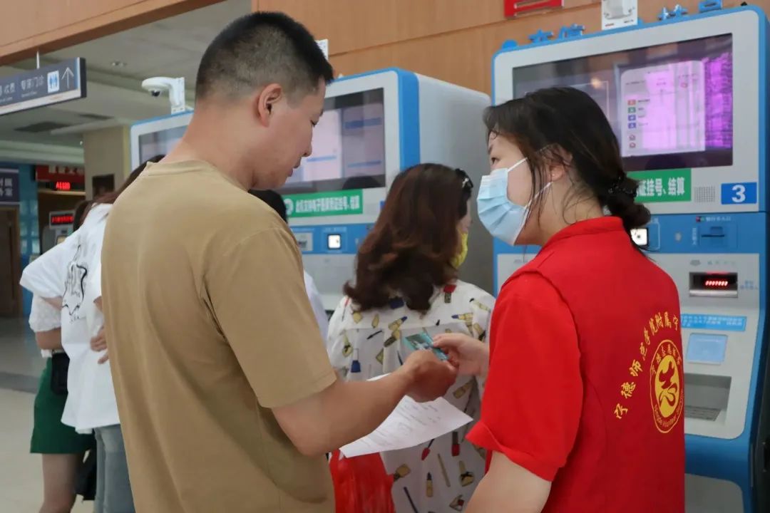 愈接近周末,各科室门诊大厅愈发人满为患。2023年7月7日,宁德师范学院医学院“医路践行,以声传心”重点社会实践团队的成员们在各自诊室带教老师的领导下系统、有序地进行导医导诊的社会志愿服务,队员们逐渐从手足无措,不知所云到了然于心,得心应手。